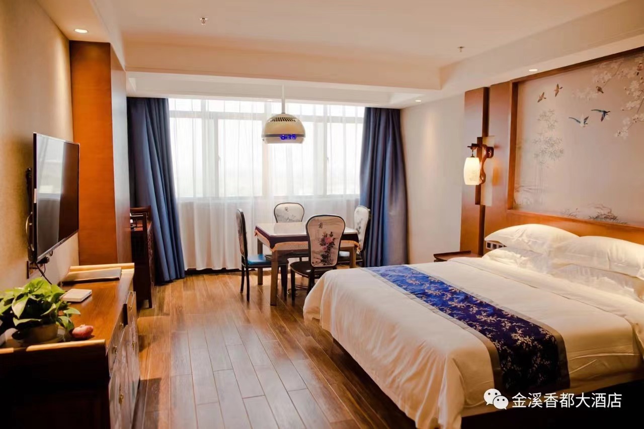 金溪县香都大酒店位于“香谷小镇”对面,属于政府重点招商引资项目——金溪国际汽车城配套酒店,总投资八千万元,面积约13000余平方米,集客房、餐饮、娱乐为一体,酒店拥有总统套房、豪华景观房等各类客房100余间,拥有会议厅、早餐厅及3000平方米特色中餐厅,可同时接待1000余人就餐,与金溪大剧院、行政中心相毗邻,距国家4A级景区竹桥古村仅需20分钟车程。酒店新中式装修风格独特,和谐的将金溪文化融入到中国风,既有现代商务豪华大气的特点,又兼备柔婉幽雅、沉稳厚重的中国传统文化神韵,是您商务洽淡、旅游度假、招待亲朋的理想之选。